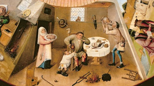 Representación de la gula en la ‘Mesa de los pecados capitales’ (1500), de El Bosco Museo del Pardo/Wikimedia Commons, CC BY