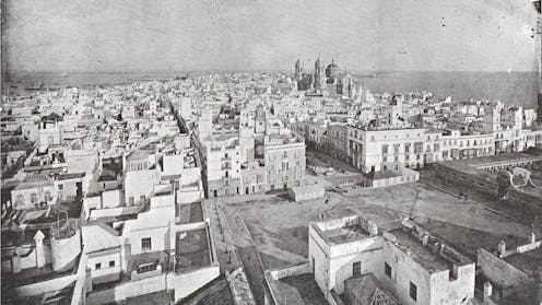 Vista de Cádiz desde la torre Tavira captada por Juan Laurent en el siglo XIX. Wikimedia Commons