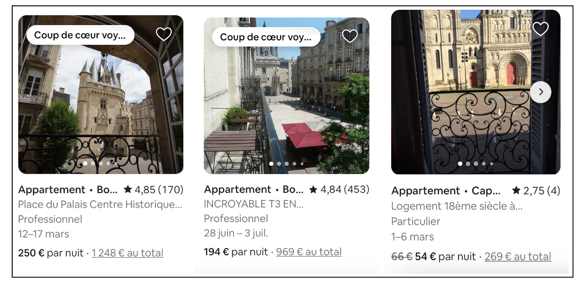 « Mon appartement a un énorme avantage : sa localisation dans le cœur de ville. Je joue donc cette carte à fond… Le titre convainc les voyageurs qu’ils sont au bon endroit, l’appartement est facile d’accès, avec une vue imprenable sur la Grosse Cloche. Les touristes sont à 7 min à pied de (la place touristique de) Pey-Berland, à 10 min du Grand-Théâtre. Bordeaux est une ville à taille humaine, vous pouvez pratiquement tout faire à pied, revenir déjeuner à l’appartement, faire la sieste et repartir vous promener l’après-midi. » – Ayron, hôte bordelais.
