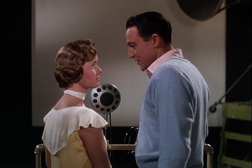 En _Cantando bajo la lluvia_ el personaje de Debbie Reynolds acaba teniendo que doblar a la protagonista de la película que están rodando. IMDB