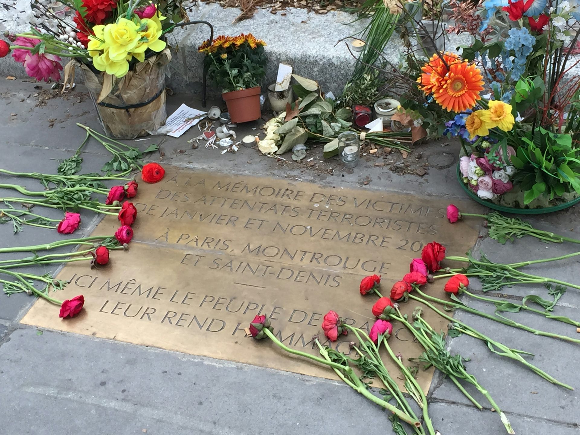 Les attentats du 13 novembre 2015 marquent ainsi un net raccourcissement du délai moyen entre la survenue de l’attentat et son rappel dans l’espace public. La plaque qui rappelle l’attentat de 1986 de la rue de Rennes comme celle qui rend hommage aux victimes de l’attentat de 1982 de la rue des Rosiers avaient, toutes deux, été apposées à l’occasion du troisième anniversaire des attaques. Le délai est désormais d’une année seulement.