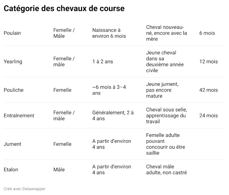 C’est un équidé élevé, dressé et entraîné spécifiquement pour participer à des compétitions officielles de vitesse ou d’endurance. Il ne faut pas le confondre avec un cheval de sport qui est utilisé dans d’autres disciplines équestres, comme le saut d’obstacles, le dressage ou le concours complet. Sa valeur dépend à la fois de sa performance sportive, de sa lignée génétique et de son potentiel de reproduction. Les chevaux de course sont classifiés en fonction de leur âge.