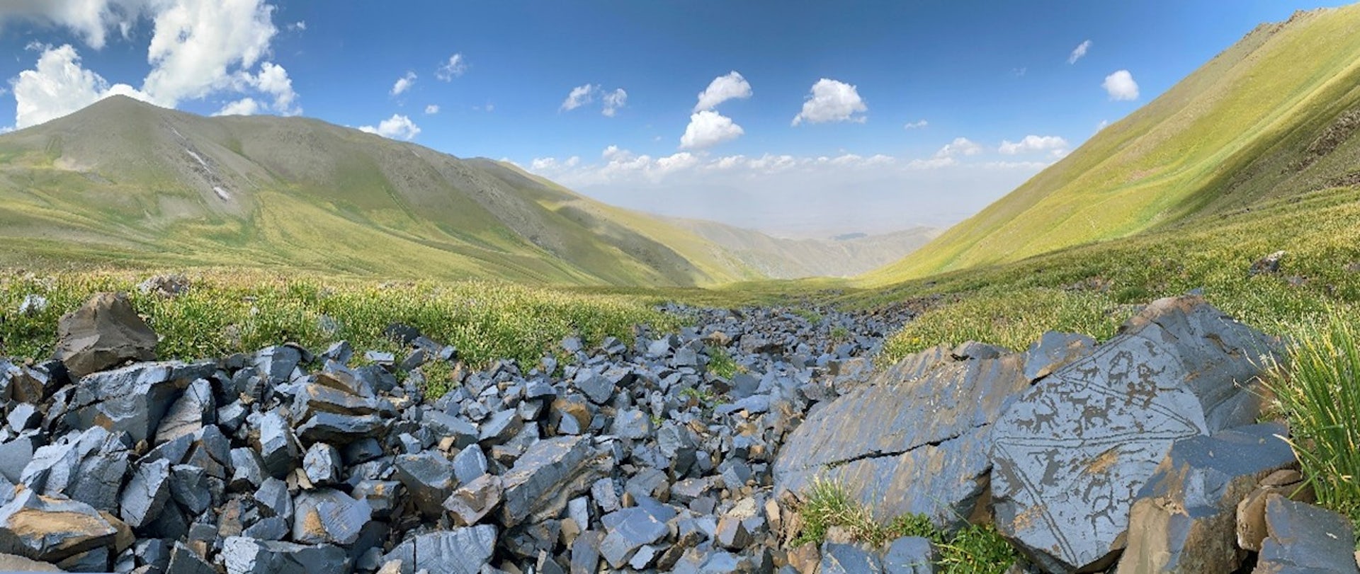 El valle glaciar de Saimaluu Tash es un escenario singular: depósitos morrénicos, lagos en forma de corazón, laderas esculpidas por la erosión, y un microclima que, paradójicamente, ha ayudado a preservar los grabados. Al investigar en él no solo queremos conocer la historia geológica de las piedras, sino entender el contexto que permitió que estos grabados rupestres se hayan conservado casi intactos durante miles de años. Después de todo, la historia geológica del valle está entrelazada con la historia humana que estos representan.