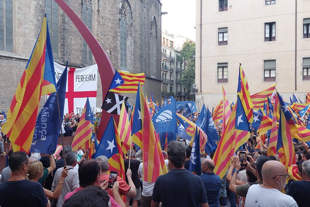An Aliança Catalana rally in Fossar de les Moreres square, Barcelona, on September 10, 2025. Aniol/Wikimedia Commons
