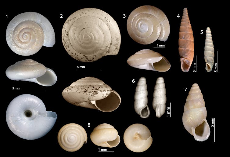 Notre équipe a également étudié de petits fossiles particulièrement intéressants pour reconstituer en détail l’évolution de l’environnement : les coquilles de mollusques (escargots et limaces). Chaque escargot a des contraintes écologiques particulières et porte sur sa coquille des caractères distinctifs qui permettent même sur un petit morceau de reconnaître l’espèce à laquelle elle appartenait. Ainsi, la malacologie, discipline qui étudie ces fossiles de mollusques, permet de déduire à partir des assemblages d’escargots les milieux dans lesquels ils vivaient.
