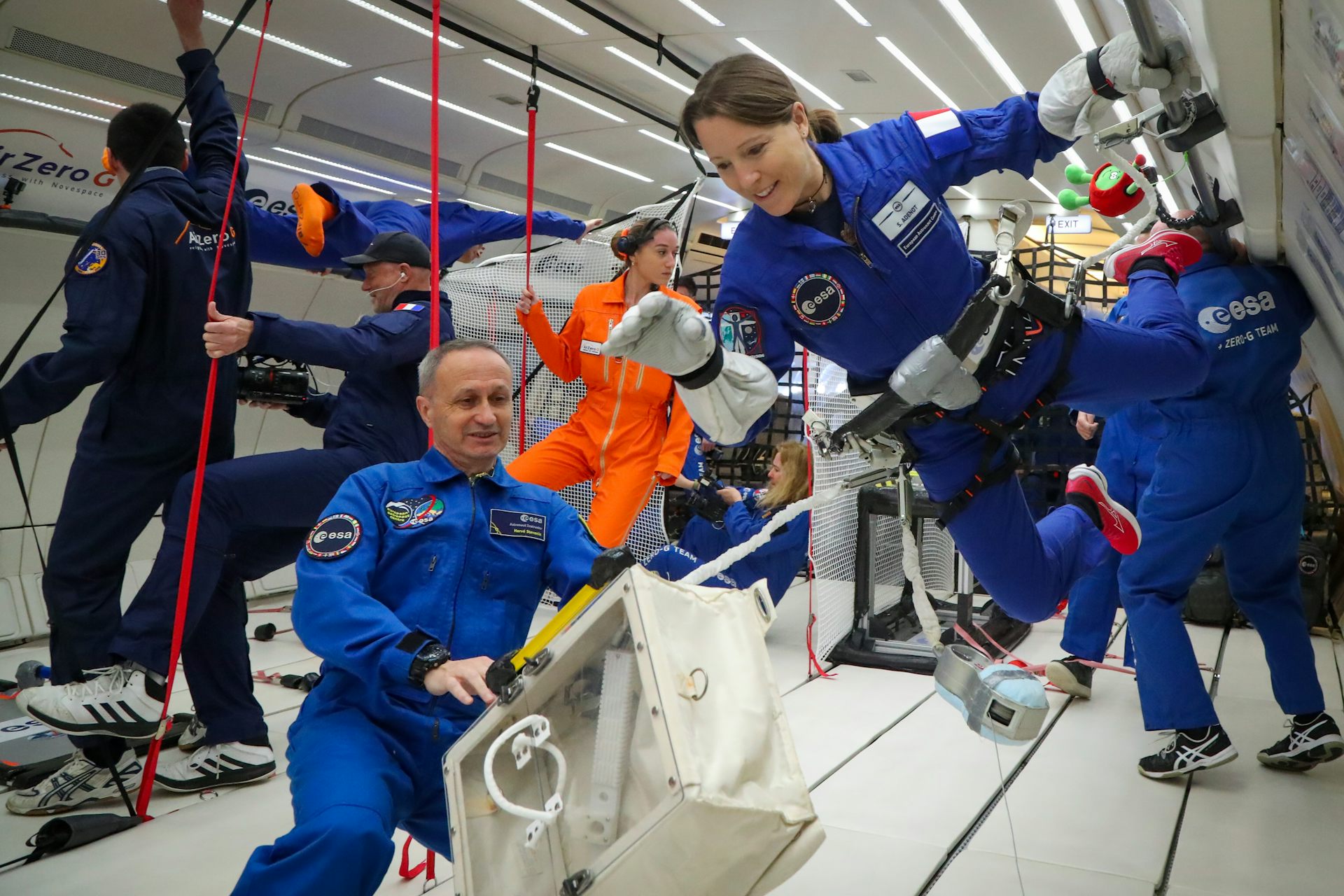 L’astronaute française Sophie Adenot s’entraîne lors d’un vol parabolique destiné à simuler l’état d’impesanteur. Les travaux révèlent que ce dernier entraîne l’atrophie rapide de petits muscles importants pour l’étanchéité des valves cardiaques. ESA – A. Conigli