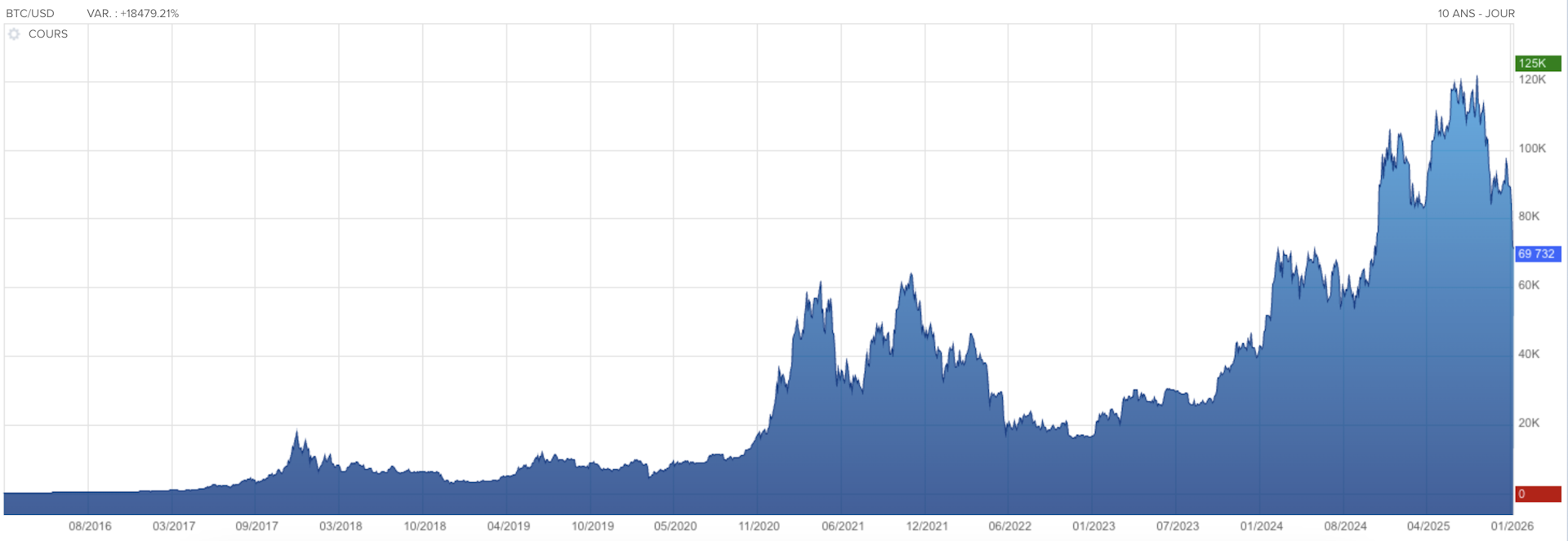 En France, environ 5 millions de particuliers ont déjà investi dans des cryptoactifs, souvent sans disposer d’outils de couverture ou de diversification adaptés. Lors des phases de retournement, les pertes peuvent être rapides et importantes. En 2022, le bitcoin a perdu près de 60 % de sa valeur, tandis que l’ensemble du marché des cryptoactifs enregistrait une perte d’environ 1 700 milliards de dollars (1 433 milliards d’euros). Ce jeudi 5 février 2026, en quarante-huit heures, le bitcoin a plongé de près de 15 %, passant sous les 70 000 dollars (59 000 euros).
