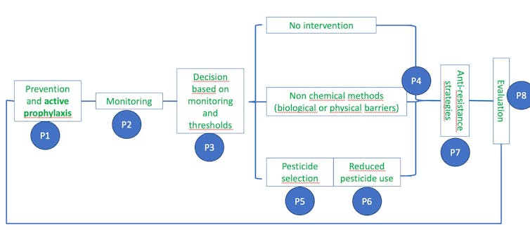 Les différentes étapes de la protection intégrée des cultures, avec une stratégie active de prophylaxie.