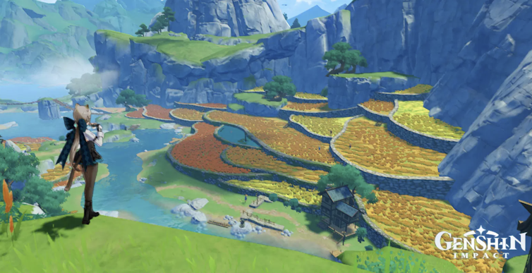 Dans Genshin Impact, par exemple, une région du jeu (Liyue), est une ville portuaire et commerçante, qui pourrait être inspirée de Chongqing, présentant à la fois une architecture traditionnelle chinoise et des constructions modernes. Le parc national de Zhangjiajie (province de Hunan), classé à l’Unesco, aurait également servi d’inspiration avec ses pics couverts d’arbres, tout comme les bassins d’autres scènes, inspirés des bassins de Huanglong dans le Sichuan, également classés à l’Unesco, ou encore les rizières en terrasses inspirées de Honghe Han dans le Yunnan, là encore classées à l’Unesco.