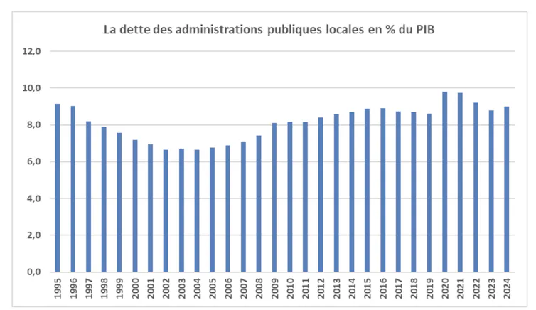 Dette des administrations publiques locales de 1995 à 2024, en pourcentage du PIB.