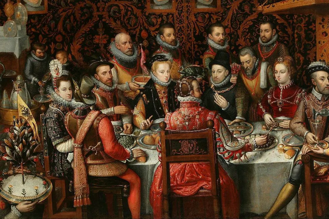 En la corte europea bajo-medieval o del Siglo de Oro, cada gesto ostentaba una relevancia significativa. Esto se manifestaba en la disposición de los comensales, la secuencia de los platos servidos, la vajilla empleada y la selección musical que acompañaba el servicio. La alimentación constituía una declaración política.