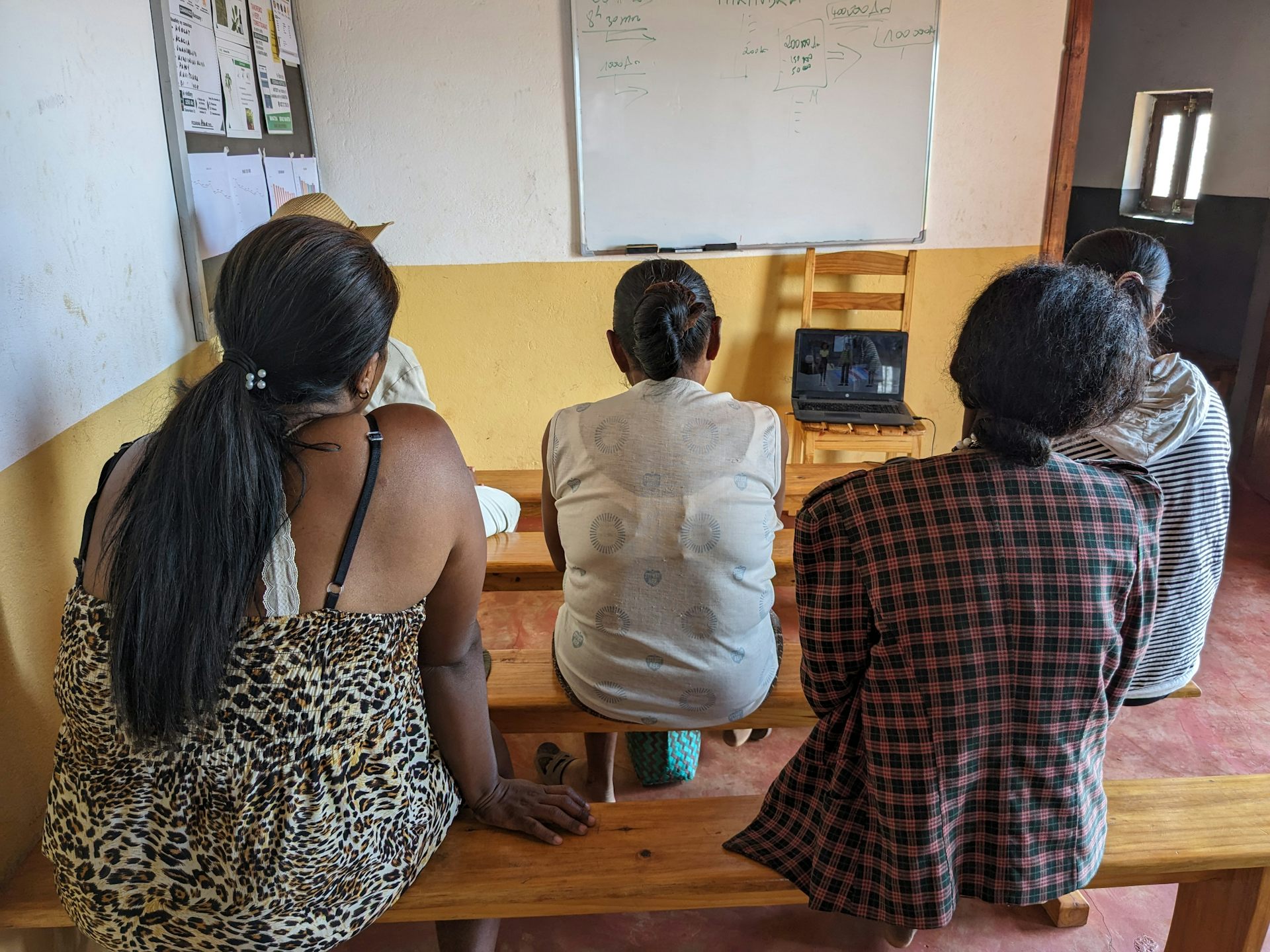 Visionnage de la vidéo de sensibilisation aux violences conjugales, Antsirabe, Madagascar.