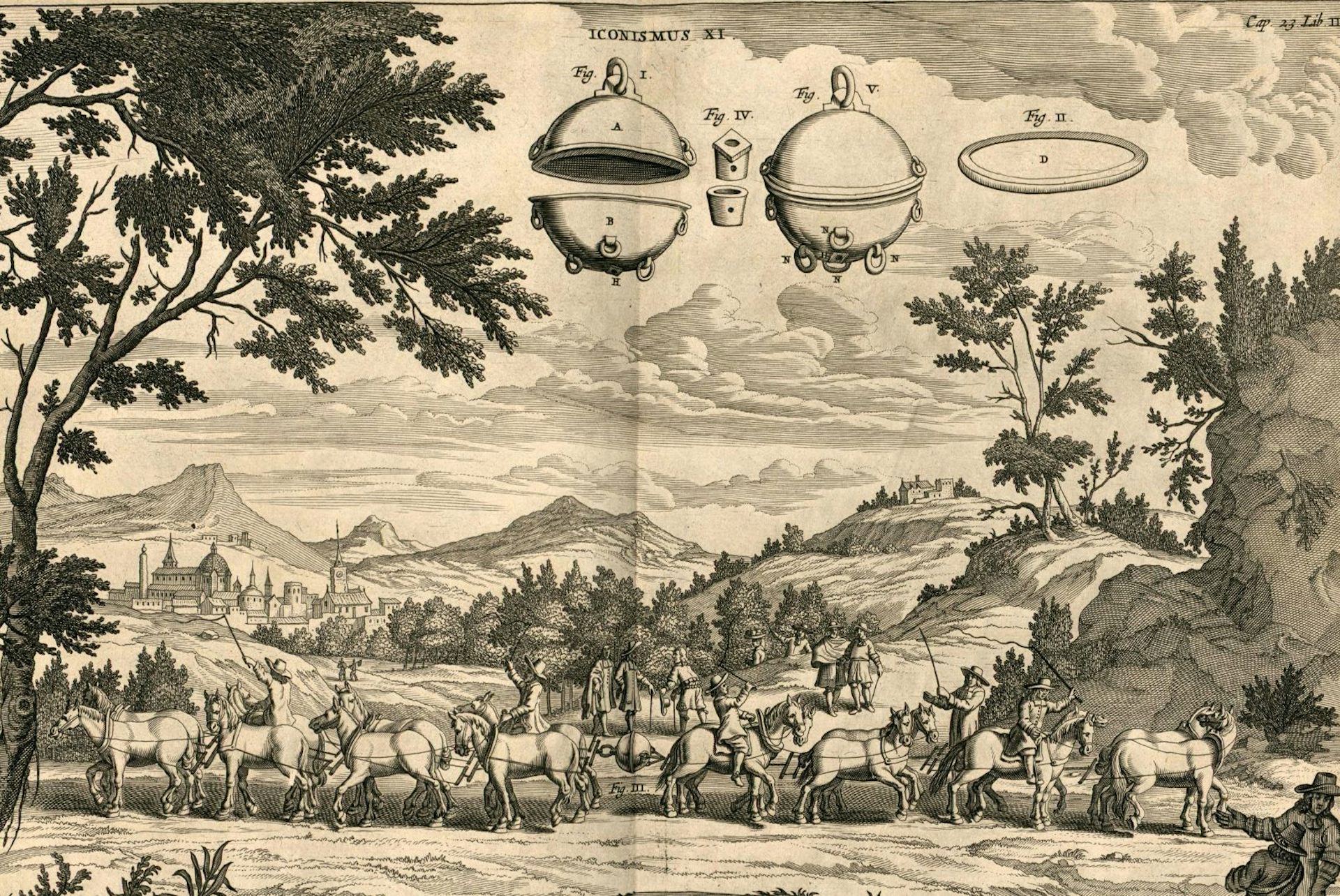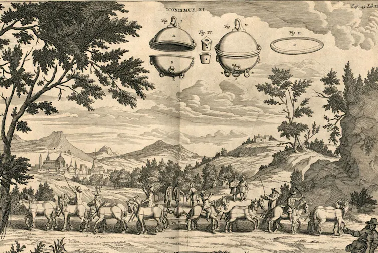 El ingeniero alemán Otto von Guericke construyó en 1650 una de las primeras bombas capaces de extraer aire de un recipiente. Su experimento más célebre tuvo lugar en 1654 en Magdeburgo: unió dos hemisferios metálicos huecos, extrajo el aire de su interior y pidió a dos equipos de caballos que tiraran en direcciones opuestas. Los animales no lograron separarlos. Así mostró de manera espectacular la enorme fuerza ejercida por la presión atmosférica.
