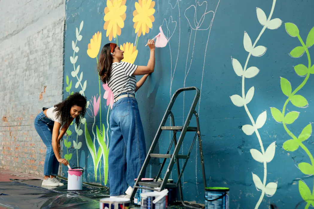 2. Realizar un mural en una pared exterior a partir de un boceto creado en el aula de manera colectiva.