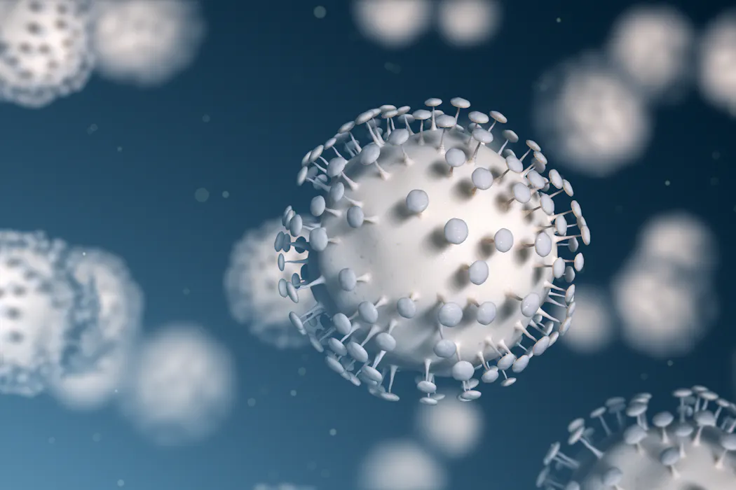 Coronaviruses with their telltale spike proteins. Jezper/Shutterstock.com