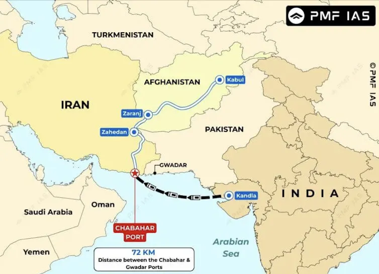 Chabahar, dans le sud de l’Iran, se trouve sur le golfe d’Oman, à proximité du détroit d’Ormuz et à 72 kilomètres du port pakistanais de Gwadar.