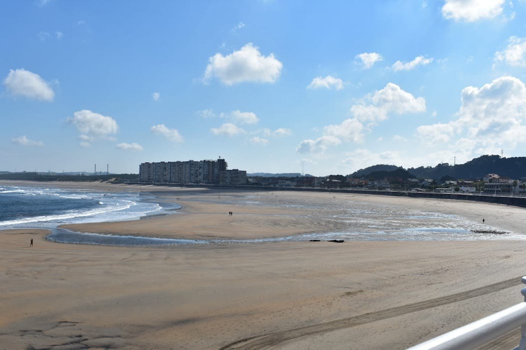 Fotografía de la playa de Salinas, escenario de la investigación llevada a cabo por la Universidad de Oviedo sobre su sistema de corrientes de resaca. En la imagen se distingue una depresión en la zona intermareal, causada por la acción de una de estas corrientes. Aitor Marqués Alonso.